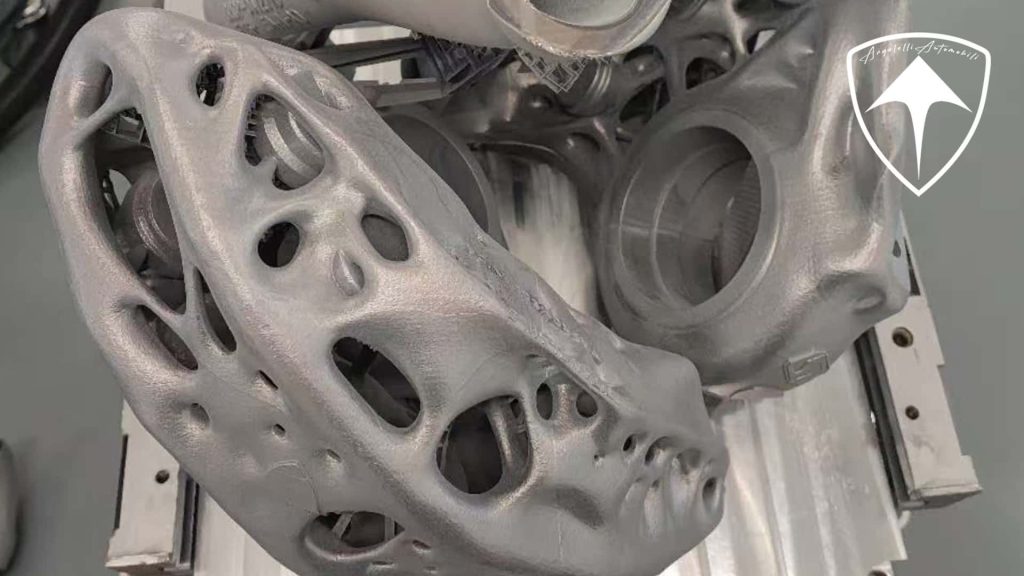 Projenin merkezinde, ultra hafif ve son derece rijit bir yapı elde etmek için üretken tasarım algoritmalarından ve yapay zekadan yararlanan tescilli Alien Mesh Design teknolojisinin bir sonucu olarak 3D baskı ile üretilen titanyum ve alüminyum bir şasi yer alıyor. Fotoğraflar: Angelelli Automobili