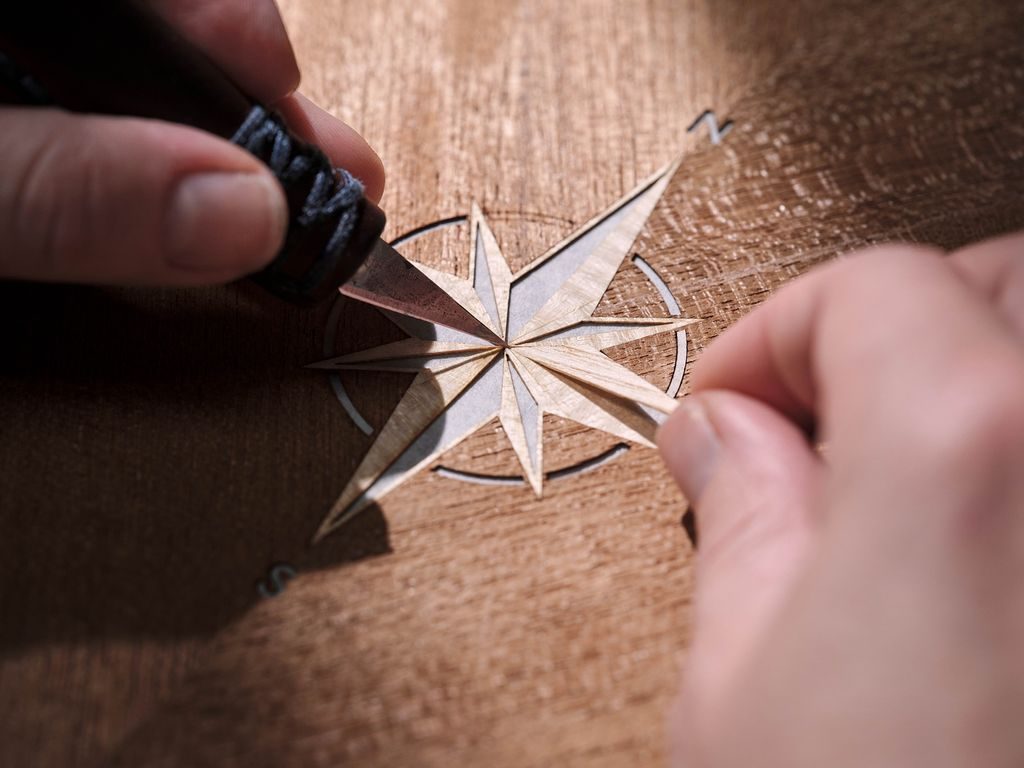Ön panelin ötesinde, iç mekânda arka Waterfall bölümü, arka orta konsol kapağı ve kapı panelleri de dahil olmak üzere her yerde açık gözenekli tik ağacı kullanıldı. Yat güvertelerinde yaygın olarak bulunan bu malzeme, denizcilik özgünlüğü, doğal dokunsallığı ve sade ve zarif bir görsel sıcaklığı nedeniyle seçildi. Arka “waterfall” (arka orta konsolun dikey yüzeyi) bölümünde, ahşap kakma işçiliğiyle yapılmış bir pusula motifi temayı sabitliyor. Her bir tasarım, Sycamore, Teak, Ash ve Black Bolivar kaplamalarından oluşan 40’tan fazla parçanın kusursuz şekilde kesilip tamamen el işçiliğiyle bir araya getirilmesiyle oluşturuldu.